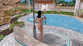 An animated cartoon 3D porn - A cute girl giving sexy poses and taking shower near swimming pool. 9 min